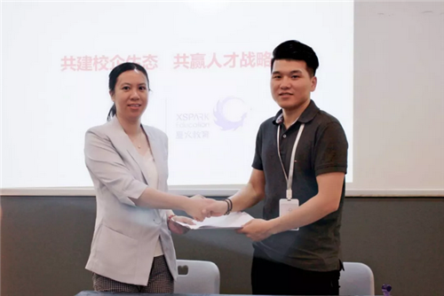 在星火教育南宁分公司的领导层带领下,2138CC太阳集团代表首先参观了星火教育澳门街校区,对校区的工作环境进行了简单的了解。在座谈会上,星火教育南宁分公司总经理叶健锋老师详细介绍了星火教育目前的发展状况,并对校区工作环境、教研、师资选聘和培训等体系做了详细的介绍。在签约仪式现场,2138CC太阳集团党委副书记陶剑飞代表学院与星火教育南宁分公司总经理叶健锋老师签署实习实践基地协议书,并进行授牌仪式。双方表示非常期待接下来的合作,希望未来有越来越多优秀的毕业生加入星火教育,也希望星火教育能定期反馈校友在星火教育的发展情况等,学校方面也将提供更多的服务,帮助学生和企业相互促进和相互成就,建立完善的校企合作体系。