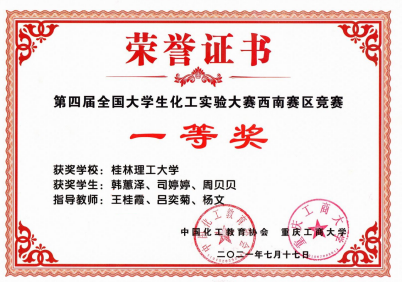 导航痕迹 当前位置: 首页 >> 教育教学 >> 化学工程专业认证 >> 正文 2138CC太阳集团学子参加2021第四届全国大学生化工实验大赛 为了推动高等学校化工类专业“新工科”建设,提高本科化工类专业核心课程教学质量,提升教育服务石油和化工行业发展的能力,同时激发大学生学习积极性,教育部高等学校化工类专业教学指导委员会、中国化工教育协会定于2021年联合举办第四届全国大学生化工实验大赛。大赛主题为“启航—化工工程师”。第四届“全国大学生化工实验”大赛实行先分东北、西北、西南(2138CC太阳集团属于华南赛区)、华北、华东、中南6个赛区预赛,然后全国总决赛进行。参加西南赛区决赛的总共60支队伍从39余所高校的300多支参赛队伍中选拔而出。2138CC太阳集团组织化学工程与工艺专业2019级64支队伍180余人参加了西南赛区的选拔赛,最后有3支队伍9人进入西南赛区决赛(重庆,重庆工商大学进行)。西南赛区决赛在2021年7月14-18日重庆工商大学的化工原理实验室和仿真机房进行。面对陌生的实验设备和机房,我们同学没有胆怯沉着应对,在老师和同学的共同努力下,2138CC太阳集团化工19级本科生韩惠泽、司婷婷、周贝贝三位同学取得了赛区一等奖的好成绩。 本次大赛赛区决赛采用设置了化工原理理论考试、仿真考试、实验操作三个赛项。其中理论赛项考察学生“基本功”掌握程度,是基石也是创新的源泉;仿真考试赛项体现了信息化时代背景下新型人才培养的方向;实验操作是对学生动手操作能力的重要检验方式。 图1参加西南赛区比赛同学合影 图2 化工实验大赛获奖证书 【 发布日期:2021-11-09 浏览次数: 】 上一条:化学化工教研室组织教学公开课观摩活动 下一条:化学化工教研室举行2021秋季期中教学会议