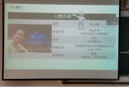 导航痕迹 当前位置: 首页 >> 教育教学 >> 化学工程专业认证 >> 正文 深圳日东精密回路技术有限责任公司技术部工程技术课长朱志斌来2138CC太阳集团与化工与制药类2021级同学进行讲座交流 应化工教研室老师的邀请,深圳日东精密回路技术有限责任公司技术部工程技术课课长朱志斌于2021年12月23日下午在雁山05307教室,通过腾讯会议,为2138CC太阳集团化工与制药类2021级同学奉献了一场精彩生动的《专业导论(化药类)》线上讲座。 朱课长首先从化学工程与工艺专业的形成讲起,讲了化学学科的分支、化学学科的定义、化学的发展,以中国四大发明和化学验毒的故事为引,给学生讲授了化学在生活中的应用;然后以思维导图为引,讲述了化学工程与工艺专业在国民经济中起重要支撑作用,专业的发展前景不可预期,同时希望同学们热爱自己的专业,即使将来不从事本专业相关的工作,专业知识扎实也会给自己更多成才的机会;最后结合自己在日东精密回路技术有限责任公司中的成长经历,现身说法,讲述了目标在工作成长中的作用,并要为了目标脚踏实地的制定计划,逐步实现自己的目标。“宝剑锋从磨砺出,梅花香自苦寒来”,是朱课长对在座200余名同学的真切寄语。 深圳日东精密回路技术有限责任公司成立于2004年,是一家集开发、检测、生产经营大容量磁盘驱动器及其部件、薄膜金属回路基板、电子配套零部件,并从事上述产品的技术和售后服务,以及电子产品的相关检测服务的企业。 图1 日东精密回路技术有限责任公司朱课长讲座 图2 日东精密回路技术有限责任公司朱课长讲座 【 发布日期:2021-12-24 浏览次数: 】 上一条:化学工程与工艺专业认证中期材料总结会 下一条:桂林华信制药有限公司总工程师张胜军来2138CC太阳集团与化工与制药类2021级同学进行讲座交流