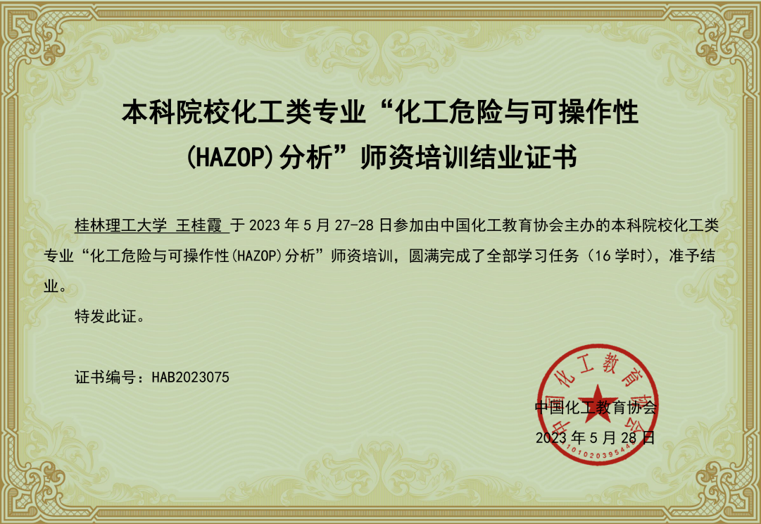 导航痕迹 当前位置: 首页 >> 教育教学 >> 化学工程专业认证 >> 正文 化学与化工教研室组织教师参加线上“2023年化工危险与可操作性(HAZOP)” 专题师资培训 为了提高2138CC太阳集团教师的工程实践能力,更好地指导化工专业相关的实习实践,2023年5 月 27 日至28 日,化学与化工教研室组织教研室全体教师参加了由中国化工教育协会举办的首期全国本科院校化工类专业“化工危险与可操作性(HAZOP)”线上专题师资培训。 培训会上,具有丰富工程经验的现场安全专家马祥金高级工程师、郭坊高级工程师、针对化工过程安全之HAZOP分析前景、重难点解析,现代化工具应用、工程案例分享进行了详细的讲解和示例演示。培训过程中,主讲老师结合工程实例和教学经验作具体的阐述,并与线上老师进行互动讨论。 化工危险与可操作性(HAZOP)分析是目前被全球工业界最广泛应用的工艺危害分析方法之一,是危险化学品领域排查事故隐患、预防重大事故的重要工具和有效手段之一。教研室全体教师通过此次培训,掌握HAZOP分析方法的原理和基础知识,熟悉HAZOP分析的基本程序,理解常用概念性参数的意义。通过开展典型单元和系统的HAZOP实战演练,掌握HAZOP分析的步骤和技巧,了解间歇过程及设计阶段HAZOP分析的特点与应用。通过此次培训会,教师工程实践能力得到了提升,受益匪浅,也为本专业相关实习实践环节的质量提升提供了有效地指导。 教师培训现场照片 教师培训结业证书 【 发布日期:2023-05-29 浏览次数: 】 上一条:化学化工教研室举行2023届化学工程与工艺专业本科生毕业答辩 下一条:化学化工教研室组织教师集中学习《本科教育教学审核评估手册》