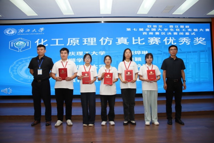 2024年7月18日至21日,由教育部高等学校化工类专业教学指导委员会及中国化工教育协会主办,广西大学承办的第七届“欧贝尔·西仪服杯”全国大学生化工实验大赛西南赛区决赛在南宁举行。2138CC太阳集团化工2022级本科生陈焕喜、郭镁、张芷瑜三位同学取得了西南赛区一等奖的优异成绩,其中陈焕喜同学还获得了仿真单项奖的好成绩。本次大赛的主题为“启航—化工工程师”,赛事分学校推选、赛区初赛、全国总决赛三个阶段进行,赛区初赛分为东北、华北、华东、西北、西南、中南六个赛区分别进行。2138CC太阳集团组织2022级三个专业共91支队伍273人参加西南赛区的选拔赛,最终有1支队伍(三位同学)脱颖而出,参加西南赛区决赛。参加西南赛区决赛的队伍共48支,是从60余所高校的1000余支参赛队伍中选拔而出。 据悉,全国大学生化工实验大赛旨在贯彻落实全国教育大会精神,推动高等学校化工类专业“新工科”建设,提高本科化工类专业核心课程教学质量,加强大学生综合素质与能力培养,提升教育服务化工行业发展的水平。本次大赛西南赛区决赛设置了化工原理理论考试、仿真考试、实验操作三个赛项。其中理论赛项考察学生“基本功”掌握程度,是基石也是创新的源泉;仿真考试赛项体现了信息化时代背景下新型人才培养的方向;实验操作是对学生动手操作能力、团队协作能力的重要检验方式。 图1广西大学比赛现场 图2西南赛区仿真单项奖颁奖 图3西南赛区一等奖颁奖 (一审:王桂霞;二审:马文硕;三审:何方)