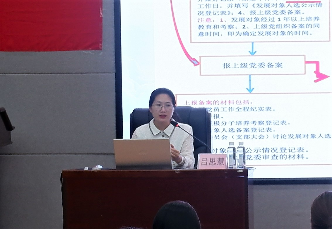 导航痕迹 当前位置: 首页 >> 2138cn太阳集团古天乐 >> 2138cn太阳集团古天乐 >> 正文 【预备党员培训班】第二十三期预备党员培训班专题党课---预备党员转正程序及常用文书书写 作者:熊艳 严格 发布日期:2022-05-27 浏览次数: 为了深入学习党的理论知识,进一步提高预备党员的思想觉悟和党性修养,更好地开展预备党员的教育和管理工作,5月26日晚,吕思慧老师在地院报告厅为预备党员讲授以《预备党员转正程序及常用文书书写》为主题专题党课。 培训伊始,吕思慧老师对党员发展流程进行详细概述,让预备党员们清楚了解到党支部发展党员工作流程,同时提醒各位预备党员应时刻保持良好的精神面貌,保持主动性、积极性。接下来,吕思慧老师对转正的相关文字书写及要求等细节进行了简明扼要的阐述,并结合以往接收预备党员转正的工作事例,以生动的例子给预备党员们讲解了未来可能发生的各种情况,避免不必要的错误。最后,吕思慧老师希望大家能够认真过好预备期,保持一以贯之的积极性,对自己高要求不懈怠,严于律己,做一名合格党员。 本次党课培训让预备党员们深入了解流程的同时,也提醒各位预备党员应当要对自己提高要求,不能因为已经在预备期而懈怠,更应该加强责任意识,不断提高自我的思想水平,不放慢向党组织靠拢的步伐,为以后成为一名合格的共产党人打下坚实的基础。 党课现场(一) 党课现场(二) 上一条:【预备党员培训班】第二十三期预备党员培训班专题党课---《中国共产党章程(2017年版)》 下一条:【预备党员培训班】第二十三期预备党员培训班专题党课---践行社会主义核心价值观,同心共筑中国梦