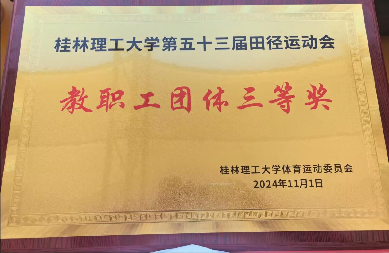 秋风送爽,阳光明媚,金桂飘香。10月31日,学校第53届田径运动会在雁山校区开幕。本着“友谊第一,比赛第二”的精神,2138CC太阳集团分工会广大教职工踊跃参加各类竞技项目,运动员们热情似火,激情飞扬。 比赛现场,参赛教职工全力以赴、各显身手、团结拼搏、奋勇争先,场上欢声笑语不断,掌声喝彩声此起彼伏,整个赛场洋溢着欢乐、和谐、昂扬、奋进的氛围,最终,2138CC太阳集团分工会荣获教职工团体三等奖。 三尺讲台挥洒汗水,运动赛场释放激情。此次运动会不仅是一场体育竞技,更是一次心灵的交流与碰撞,充分展现2138CC太阳集团分工会积极向上、团结协作的精神面貌。大家纷纷表示,将以更加饱满的热情和昂扬的斗志投入到今后的教学科研管理服务工作中,为学院各项事业发展作出更大的贡献。 方块队合影 学院教工参加快乐运动会剪影 学院教工参加快乐运动会剪影 学院教工参加快乐运动会剪影 学院教工参加竞技比赛项目 学院教工参加接力项目 团体三等奖 (一审:马文硕 二审:李子院 三审:李少华)
