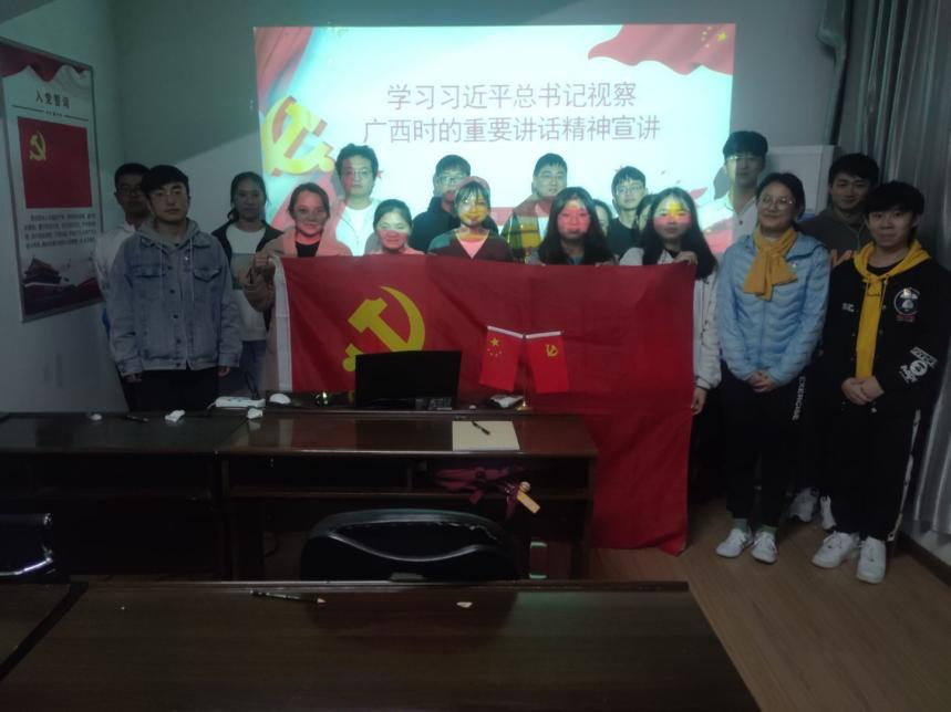 导航痕迹 当前位置: 首页 >> 2138cn太阳集团古天乐 >> 党史学习教育 >> 正文 【党史学习教育】2138CC太阳集团本科生第三党支部开展“学习习近平总书记视察广西时的重要讲话精神”专题学习会 作者:熊艳 李明 发布日期:2021-11-09 浏览次数: 为学习贯彻习近平总书记来广西视察时的重要讲话,深刻领悟其讲话精神,增强支部成员的思想政治觉悟。11月7日下午,本科生第三党支部在09607开展“学习习近平总书记视察广西时的重要讲话精神”专题学习会,本次宣讲会由岳誉华同志主持。 会议伊始,支部党员共同观看习近平总书记在广西视察调研系列视频。在视频中,习近平总书记强调:在边疆民族地区的高质量发展上要闯出新路子、要完成新目标、要展现新作为、要迈出新步伐、要彰显新担当,致力建设新时代中国特色社会主义壮美广西。最后,岳誉华同志表示我们要积极解放思想,深化改革,不断创新与建设,坚持正确的生态观和发展观。 通过此次专题学习会,支部成员深入了解了习近平总书记在视察时的讲话精神,并自觉将习近平总书记的重要讲话和重要指示精神作为学习生活的根本遵循,准确把握新发展阶段,切实发挥好党员模范带头作用。 会议现场 上一条:【党史学习教育】学院党政主要领导率队参观学习兄弟院系“党建+阵地”建设情况 下一条:【党史学习教育】2138CC太阳集团召开党委中心组理论学习会专题学习《中国共产党统一战线工作条例》
