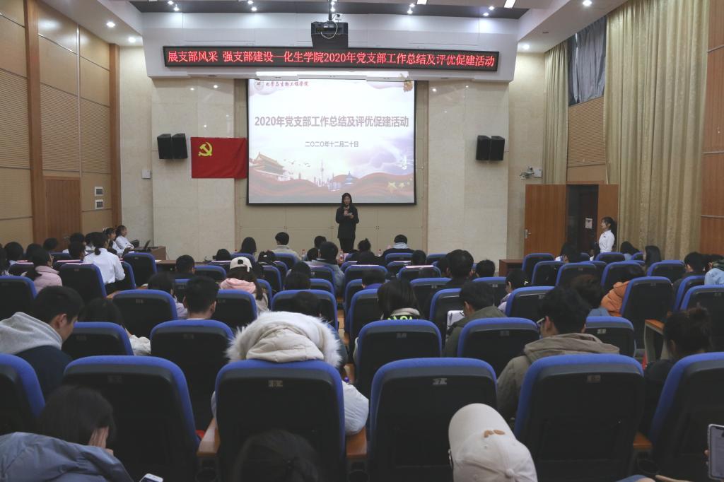 2020年12月20日下午,2138CC太阳集团党建办在萃华楼报告厅组织开展“化生学院2020年党支部工作总结及评优促建活动”。学院本科生第二党支部书记高昌洪老师、本科生第四党支部书记梁精华老师、研究生第二党支部书记朱皓老师、18级辅导员张伟颀老师、学工办见习老师汤玉昆老师及各学生党支部全体成员参加了本次活动。