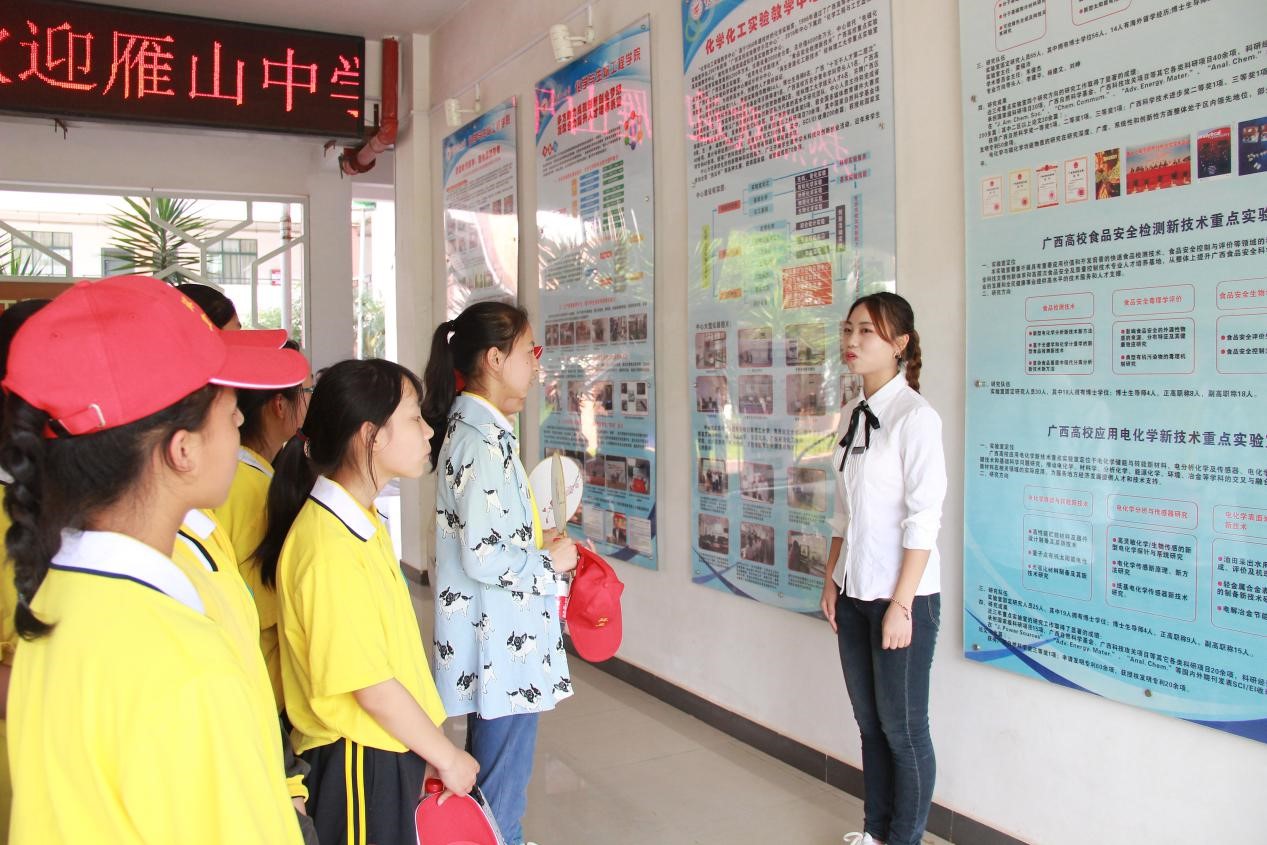 下午两点半,雁山中学师生到达2138CC太阳集团12栋教学楼,在解说员的带领下参观了2138CC太阳集团近年来在思想引领、科技文化、发明专利等等教学成果,紧接着进入虚拟仿真实、材料结构解析等实验室参观,参观过程研究生们对各实验进行了详细的概况,同时耐心地给中学生们解答了疑问,极大地提高了他们对科技创新的认知。随后,全体师生一起去看了互联网+、创青春路演答辩会,答辩人员通过ppt的形式,分别从市场分析、产品特色与工艺、产品优势等方面介绍他们的项目内容,使场下的同学了解了大学生创新创业相关信息。