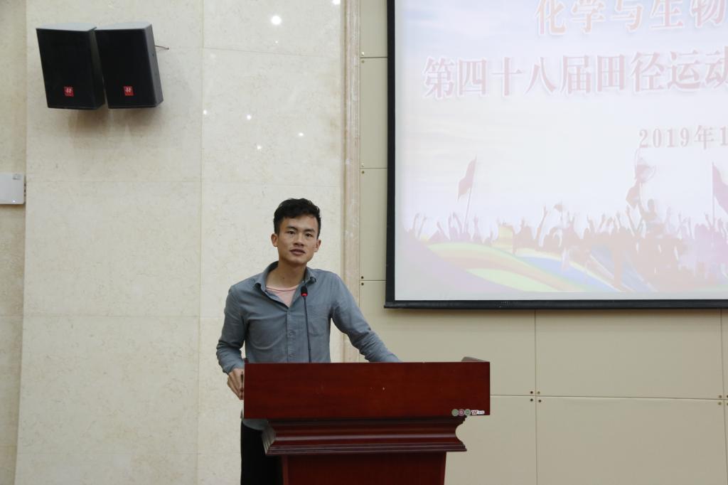 会议伊始,党委副书记李南老师对本次校运会作总结发言,他对学院在本次校运会中取得的优异成绩给予了充分肯定,高度赞扬了运动员在赛场上的卓越表现,并向所有为动运会辛勤付出的老师同学们表示感谢。同时,李老师向运动员们提出新要求、新希望,希望所有运动员加强体育训练,勇创化生辉煌。接下来,老师们分别为校运动会中获得名次与荣誉的同学进行颁奖,同时给“桂工杯”篮球赛、“新生杯”篮球赛、“桂工杯”足球赛、“桂工杯”排球赛的训练负责人发放聘书。随后,学院优秀运动员代表黄思琪同学发言,他非常感谢学院对运动员们的大力支持,感谢为运动会辛勤付出的全体工作人员,并表明决心,明年会更加努力,为学院光荣墙添砖加瓦。
