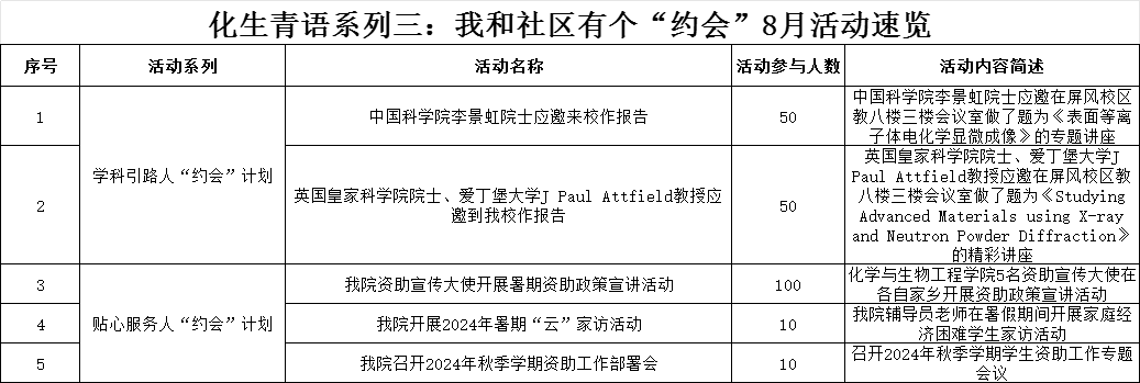 导航痕迹 当前位置: 首页 >> 学生工作 >> 学生活动 >> 正文 【化生青语】化生青语系列三:我和社区有个“约会”8月活动速览 作者: 发布日期:2024-08-31 浏览次数: 为扎实推进学校“一站式”学生社区综合管理模式建设试点工作和2138CC太阳集团“三全育人”综合改革工作,提升学院“一站式”学生社区影响力,2138CC太阳集团将“一站式”学生社区以“党建+X”模式为基础,结合学院【化生青语】育人文化,将学院育人体系下沉社区,打造【化生青语】系列三——我和社区有个“约会”特色活动。8月份,结合学院社区团队,按照学院社区我和社区有个“约会”特色品牌活动,学科引路人“约会”计划、贴心服务人“约会”计划同步推进,共同助力学院学子学习、生活方面的发展。按照“约会计划”,学院举办活动如下。 (一审:陈千癸 二审:黄道坤 三审:李少华) 上一条:2138CC太阳集团开展2024年暑期“云”家访活动 下一条:2138CC太阳集团召开2024年秋季学期资助工作部署会