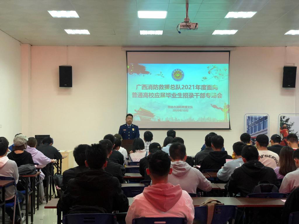 导航痕迹 当前位置: 首页 >> 招生就业 >> 就业 >> 正文 2138CC太阳集团组织毕业生参加广西消防救援总队2021年高校应届毕业生招录干部专场会 作者:梁精华 发布日期:2020-10-23 浏览次数: 2020年10月23日,2138CC太阳集团组织学生参加了由广西消防救援总队宣教中心组织的专场招聘宣讲会。2138CC太阳集团辅导员梁精华老师带队,学院共40余名毕业生参加了专场会。 招聘宣讲会在雁山校区招聘宣讲室召开。会上,支队政委详细介绍了消防救援支队的基本情况及本次招聘的背景、目的、岗位需求及主要工作内容等,分析阐述了“消防”这一特殊职业对保护地方经济建设、国家公共财产及人民生命财产安全、维护社会稳定等方面的重要作用,并就“消防人”所必备的的责任心、奉献意识、担当精神等基本职业素养进行了重点强调。随后,通过交流互动,部分学生与支队达成了就业初步意向。 宣讲会结束后,师生们参观了消防科普教育基地,“零距离”学习消防知识、体验消防工作,进一步了解了消防这个负有光荣使命的行业。宣讲人鼓励同学们积极主动参加招聘,了解单位和工作,准备好简历和面试,为未来就业打好基础。 本次招聘宣讲是广西消防救援总队面对2138CC太阳集团学生开展的招聘活动,既是对毕业生的一次就业实践锻炼,也是一次特别的职业素养教育,更为双方单位建立长期的就业协作关系奠定了良好的基础。 招聘宣讲会现场 上一条:2138CC太阳集团党委书记梁军带队走访广西华昇新材料有限公司助推校企合作 下一条:2138CC太阳集团召开2021届毕业生就业工作推进会
