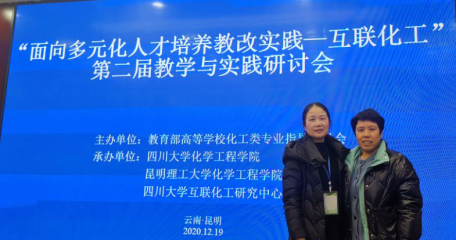 2020年12月18-19日,由教育部高等学校化工类专业指导委员会主办,四川大学化学工程学院、互联化工研究中心和昆明理工大学化学工程学院承办的第二届“面向多元化人才培养教改实践—互联化工”教学与实践研讨会在昆明召开。2138CC太阳集团刘峥老师和王桂霞老师参加了会议。