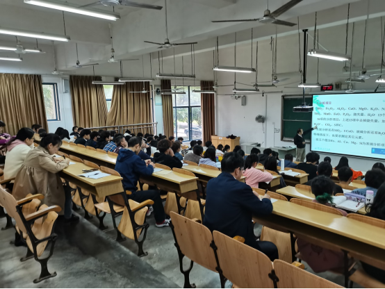 导航痕迹 当前位置: 首页 >> 新闻资讯 >> 学院新闻 >> 正文 应用化学教研室开展教学观摩活动 作者:李琳 发布日期:2021-11-04 浏览次数: 为了加强教师间的交流学习,进一步提高教师的教学技能和效果,2021年11月2日在雁山04111教室,应用化学教研室组织部分教师对阮贵华老师的“工业分析化学”课程进行了公开课教学观摩活动。 阮贵华老师从组成、分析项目、分析方法、准确度要求和试样的分解五个方面讲授了《硅酸盐分析的特点和方法》的内容,并指导学生进行了问题思考与讨论。课堂上,阮老师运用大量的实例对知识点进行生动的讲解,强调重点,解答难点,积极调动学生们的学习热情,学习效果优良。随后,参加观摩活动的各位老师从课堂教学设计、教学内容、教学方法等方面的与授课教师进行了深入地交流与探讨。本次公开课观摩活动,为教师们提供了一次珍贵的交流、学习、提高的机会。 阮贵华老师主讲工业分析化学公开课 教研室老师和同学们一起认真听课 上一条:2138CC太阳集团举办高校青年骨干教师教学基本功提升专题讲座(青教赛备赛经验分享篇) 下一条:2138CC太阳集团师生参加广西本科高校生物科学与生物工程类教学指导委员会院长联席会议暨第三届大学生创新创业竞赛