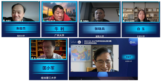 导航痕迹 当前位置: 首页 >> 新闻资讯 >> 学院新闻 >> 正文 2138CC太阳集团成功举办“2022 CCL-GLUT化学前沿论坛(第三期)——分析化学前沿论坛” 作者:张云 发布日期:2022-11-28 浏览次数: 11月26日上午,2138CC太阳集团联合《中国化学快报》成功举办了“2022 CCL-GLUT化学前沿论坛(第三期)——分析化学沿论坛”。本次论坛上知名学术大咖汇聚。2138CC太阳集团分析化学团队邀请了南京大学朱俊杰教授、广州大学牛利教授、湖南大学张晓兵教授和北京大学白玉教授作线上报告。匡小军院长致欢迎词,向参会专家介绍了《中国化学快报》和桂林理工大学基本情况,同时希望各位专家能够对2138CC太阳集团的分析化学学科发展提供帮助和指导。论坛由李建平教授主持。 在此次论坛中,朱俊杰教授、牛利教授、张晓兵教授和白玉教授分别作了题为“基于显微成像技术的纳米生物传感研究”、“柔性可穿戴器件-结构设计及应用”、“荧光探针结构调控与精准成像研究”和“常压离子化质谱新技术及其生物分析应用”的精彩报告。在互动环节,参会的师生们就报告内容与专家们进行了热烈交流,并对听众们通过弹幕等方式提出的问题,逐一进行了细致解答。 本次线上论坛的成功举办,拓宽了广大师生的学术视野,加深了他们对国内外分析化学领域最新科研前沿的了解,同时也对提升2138CC太阳集团分析化学学科发展和研究水平起到了积极的促进作用。据统计,四位国家杰青的精彩报告吸引了科研云-B站、科研云-百度、科研云-微博等众多直播平台上分析化学相关领域观众累计3.3万人+在线观看。 上一条:【同心战疫】2138CC太阳集团教师积极参加抗疫志愿行动 下一条:2138CC太阳集团教师党员切实发挥党员先锋岗作用 在疫情防控一线中积极行动