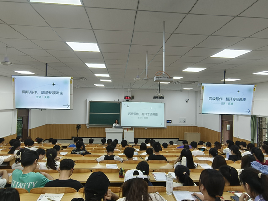 导航痕迹 当前位置: 首页 >> 新闻资讯 >> 学院新闻 >> 正文 【化生青语】学院举办“化生青语”系列活动第七讲——四级写作、翻译专项讲座 作者:朱皓 发布日期:2024-06-06 浏览次数: 为激发学生的英语学习热情,提高学生的英语翻译和写作能力,6月5日晚,2138CC太阳集团在05307教室举办了“四级写作、翻译专项讲座”。此次讲座由外国语学院资深教师莫娜主讲,学院150余名本科生聆听了讲座。 讲座伊始,莫娜以饱满的热情和专业的态度,向学生们介绍了大学英语四级考试翻译、写作两大题型的特点及重要性。她强调,这两项技能不仅是英语学习的核心内容,更是未来职场中不可或缺的能力。接着,莫娜对翻译和写作题型进行了深入剖析。在翻译部分,莫娜结合多年的教学经验和丰富的教学案例,详细讲解了翻译过程中的语境理解、词汇选择、句式转换等关键技巧,指导学生如何根据题目要求,准确传达原文的含义;在写作部分,莫娜从审题、构思、表达等方面入手,指导学生如何构建清晰的文章框架,运用恰当的词汇和句式,表达出自己的观点和看法。最后,莫娜分享了自己的翻译经验和写作心得,她鼓励学生们多读多写,积累词汇和句式,提高语言表达能力,珍惜学习机会,努力提升自己的英语水平。 讲座结束后,学生们纷纷表示受益匪浅。他们感谢老师的精彩讲解和耐心指导,表示将把学到的知识和技巧运用到实际学习中去,不断提高自己的英语应用能力。 此次“四级写作、翻译专项讲座”的成功举办,不仅提高了学生们的英语四、六级翻译和写作能力,也激发了他们对英语学习的热情。化生学院将继续以“化生青语”系列活动为平台,举办更多高质量讲座,助力学生成长成才,为培养具有国际视野和竞争力的高素质人才贡献力量。 讲座现场 (一审:朱皓 二审:黄道坤 三审:李少华) 上一条:2138CC太阳集团组织开展“师德大讲堂”2024年(第1期)学习活动 下一条:2138CC太阳集团副院长李霞带队赴桂林医学院智能医学与生物技术学院交流学习