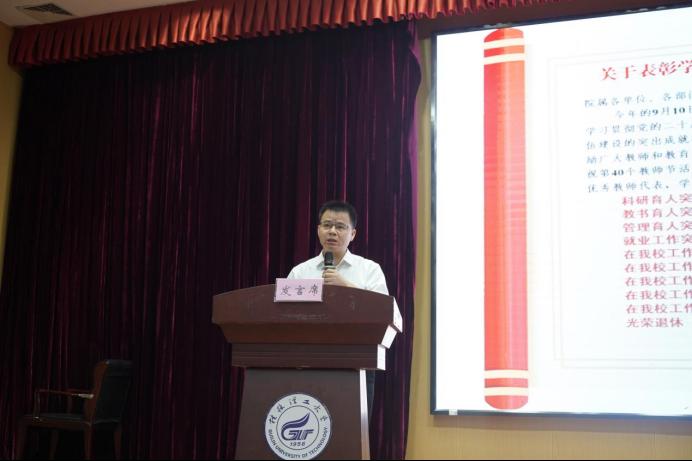 导航痕迹 当前位置: 首页 >> 新闻资讯 >> 学院新闻 >> 正文 躬耕教坛 强国有我--2138CC太阳集团庆祝2024年教师节活动圆满成功 作者:马文硕 发布日期:2024-09-12 浏览次数: 为充分展现高质量教师队伍建设的突出成就和广大教师立德树人、自信自强的精神风貌,大力营造尊师重教的良好氛围,化生学院以庆祝第40个教师节为契机,于9月11日上午在雁山校区图书馆报告厅开展以“躬耕教坛 强国有我”为主题的教师节庆祝活动。学校党委常委、副校长黎贞崇、学院党委书记彭代江、院长匡小军以及学院全体教师、学生代表等200余人参加了本次活动。 活动伊始,黎贞崇发表了热情洋溢的致辞,他饱含深情地分享了那些平凡而又动人的故事,每一个细节都透露出对教育事业的热爱与执着,深深感染了现场的每一名教职工。黎贞崇强调广大教职员工要以教育家为榜样,认真学习、深刻领悟,大力弘扬、自觉践行教育家精神,牢记为党育人、为国育才的初心使命,树立“躬耕教坛、强国有我”的志向和抱负,一是坚定理想信念,提高政治站位,领悟并传播教育家精神深邃的历史穿透力;二是坚持立德树人,廉洁从教,领悟并传播教育家精神优秀的榜样引领力;坚持严谨治学,宽厚育人,领悟并传播教育家精神深厚的育人智慧力;坚持厚德笃学、惟实励新,领悟并传播教育家精神深远的实践指引力。 随后,学院院长匡小军宣读了《关于学院表彰“从教三十年、二十五年、二十年、十五年、十年教师”及教书育人、科研育人、管理育人、就业工作突出贡献奖的决定》并进行了表彰活动。 会上,优秀教师代表王秀丽分享了从教多年来的心得感悟,号召全体教师践行为党育人、为国育才的初心使命,争做新时代的教育家,努力成为学生的引路人、知识的传授者和新技术的创新者。 活动最后,在场的学生们纷纷借助这个难得的机会,向他们敬爱的老师们进行了深情而真挚的告白,或手捧鲜花,或眼含泪光,用颤抖的声音诉说着老师们平日里那些默默无闻却又温暖人心的瞬间。他们讲述了老师们如何在知识的海洋里为他们引航,如何在成长的道路上给予他们鼓励与支持,又是如何在面对困难和挑战时,用坚定的信念和无私的奉献为他们树立了榜样。这场深情的告白,不仅是对老师们辛勤付出的肯定与感谢,更是师生之间深厚情感的交流与传递。 学校党委常委、副校长黎贞崇致辞 匡小军院长宣读表彰决定 各位领导为受到表彰的老师颁奖 教师代表王秀丽老师发言 学生向老师深情告白 合影留念 (一审:马文硕;二审: 李少华 ;三审: 彭代江 ) 上一条:学院赴桂林市人民医院开展研讨交流 下一条:2138CC太阳集团召开教职工大会专题学习贯彻党的二十届三中全会精神