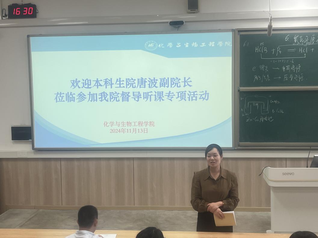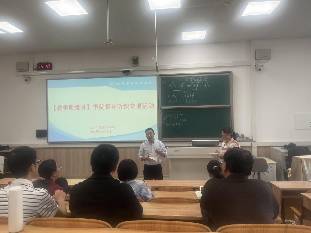 为进一步提高2138CC太阳集团教师专业素养和教学能力,夯实教师驾驭课堂的教学基本功,整体提高教师的教育教学水平,根据学校“教学质量月”工作安排,2024年11月13日下午,化生学院教师教学发展分中心组织了随堂督导听课专项活动,活动在雁山校区7520教室进行,学院督导及新进教师参加了本次活动。 本次听课对象为化工教研室杨小燕老师的《无机化学》“氧化还原反应”章节内容。随堂听课结束后的交流环节,教师们踊跃发言,从教学准备、教学内容、教学设计、课程思政以及各种教学细节等方面对本次课堂教学进行了深入探讨,对授课情况进行了认真的分析和点评,充分肯定了优点,也指出了存在的不足,并提出了改进的建议。 学校本科生院唐波副院长应邀出席本次活动。在活动总结环节,唐波副院长对2138CC太阳集团本次随堂督导听课专项活动进行了点评,并针对2138CC太阳集团实际情况在如何提高教师教育教学水平和教学质量方面提出了宝贵建议。 本次随堂督导听课专项活动,促进了2138CC太阳集团教师特别是新进教师的教学能力和教学水平的提高,规范教学过程,取得了较好的效果。 课堂教学 交流探讨 本科生院唐波副院长进行点评 一审:李海云 二审:马文硕 三审:李霞