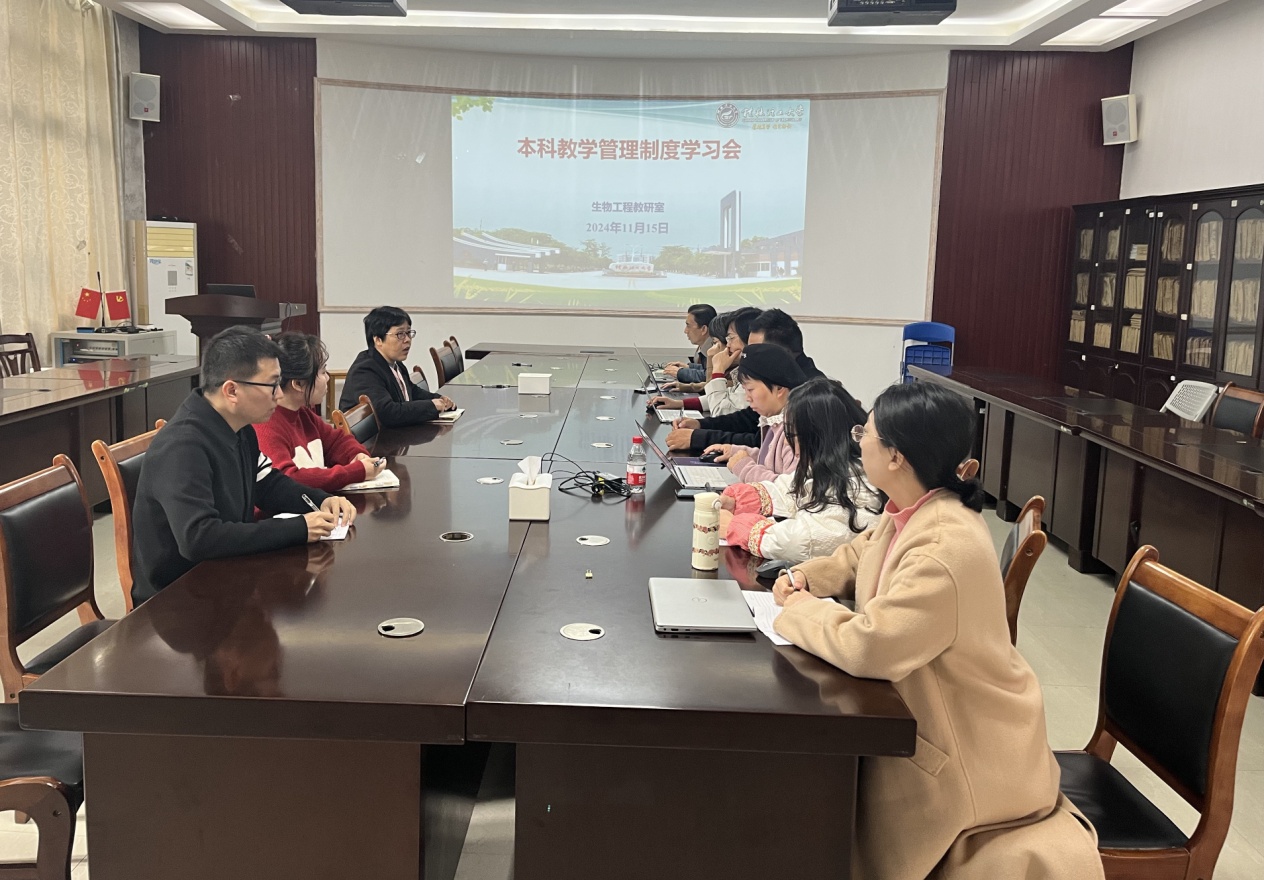 为了持续优化课堂教学成效并加速构建优质的本科教育教学体系,生物工程教研室于11月15日在雁山校区12栋12217会议室组织教师集体学习本科教学管理制度。 此次会议由生物工程教研室主任李静主持。会上,各位老师对《本科教学工作规范》《课堂管理规定》《实习工作管理规定》《实验教学管理条例》《全日制本科考试管理规定》《毕业实习和毕业设计(论文)工作规范》《教学事故认定与处理办法》等本科教学管理制度相关内容进行了学习和研讨。老师们在此次活动中更加深入地体会到教学管理规章制度对教学工作的重要性及其发挥的指导作用,并表示将会严格按照规章制度执行教学任务,以期不断提升个人的教学水平和教学质量。 集中学习现场 一审:李静 二审:马文硕 三审:李霞