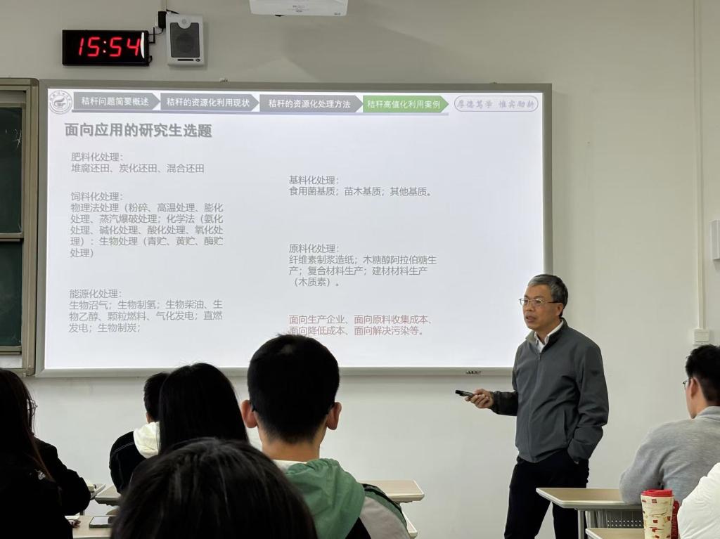2024年11月26日,应2138CC太阳集团生物工程专业的邀请,黎贞崇副校长为2138CC太阳集团师生讲授了题为《农业秸秆处理 — 绿色发展之路》的生物与医药研究前沿课程。此次讲座内容丰富、深入浅出,不仅为在场的24级研究生提供了前沿的学术指导,也为他们的课题研究选题提供了宝贵的方向与启示。 讲座伊始,黎副校长详细介绍了农业秸秆问题的背景和现状,指出随着现代农业的快速发展,秸秆作为农业副产物的处理问题日益突出,秸秆焚烧等传统处理方式不仅浪费资源,还对环境造成严重污染。黎副校长强调,如何通过绿色技术实现秸秆的高效资源化利用,已经成为全球农业和环境领域的研究重点。 讲座现场 随后,黎副校长重点讲解了秸秆的资源化利用现状以及几种创新的处理技术,包括生物转化、热化学转化、酶催化降解等。这些新技术不仅能够提高秸秆的资源附加值,还能有效减少对环境的负面影响,推动可持续农业的发展。黎副校长还分享了多个成功的秸秆高值化利用案例,展示了秸秆如何转化为清洁能源、化肥和化工原料等,为绿色发展贡献力量。 秸秆处理技术 此外,黎副校长还为2138CC太阳集团研究生在课题研究选题方面提供了深入的指导。他详细分析了目前秸秆资源化利用领域中的热门研究方向,提出了如秸秆生物质能转化、秸秆复合材料的研发等课题方向,并鼓励同学们在选题时结合当前的技术挑战与社会需求,选择具有创新性和前瞻性的课题进行研究。他强调,绿色发展不仅是时代的需求,也是科研人员应承担的责任,鼓励大家在未来的科研工作中不断追求技术突破,为推动生态文明和可持续发展做出贡献。 讲座现场 讲座结束后,现场师生纷纷表示此次讲座内容充实、实用,受益匪浅。研究生们不仅对秸秆资源化利用的技术有了更清晰的认识,还对如何选择科研课题和聚焦前沿问题有了更深刻的理解。讲座期间,黎副校长与同学们的互动环节也十分活跃,许多同学就秸秆处理技术的具体应用和未来研究方向提出了自己的疑问,黎副校长耐心解答,气氛轻松而富有启发。 本次讲座不仅为同学们提供了最新的科研动向,也为学院的科研氛围注入了新的活力。通过此次讲座,同学们更加明确了未来科研的方向和目标,纷纷表示将以黎副校长的讲解为契机,积极投身到农业秸秆资源化利用的研究中,以期为推动绿色发展和生态文明贡献力量。 一审:汤兵 二审: 马文硕 三审:李霞