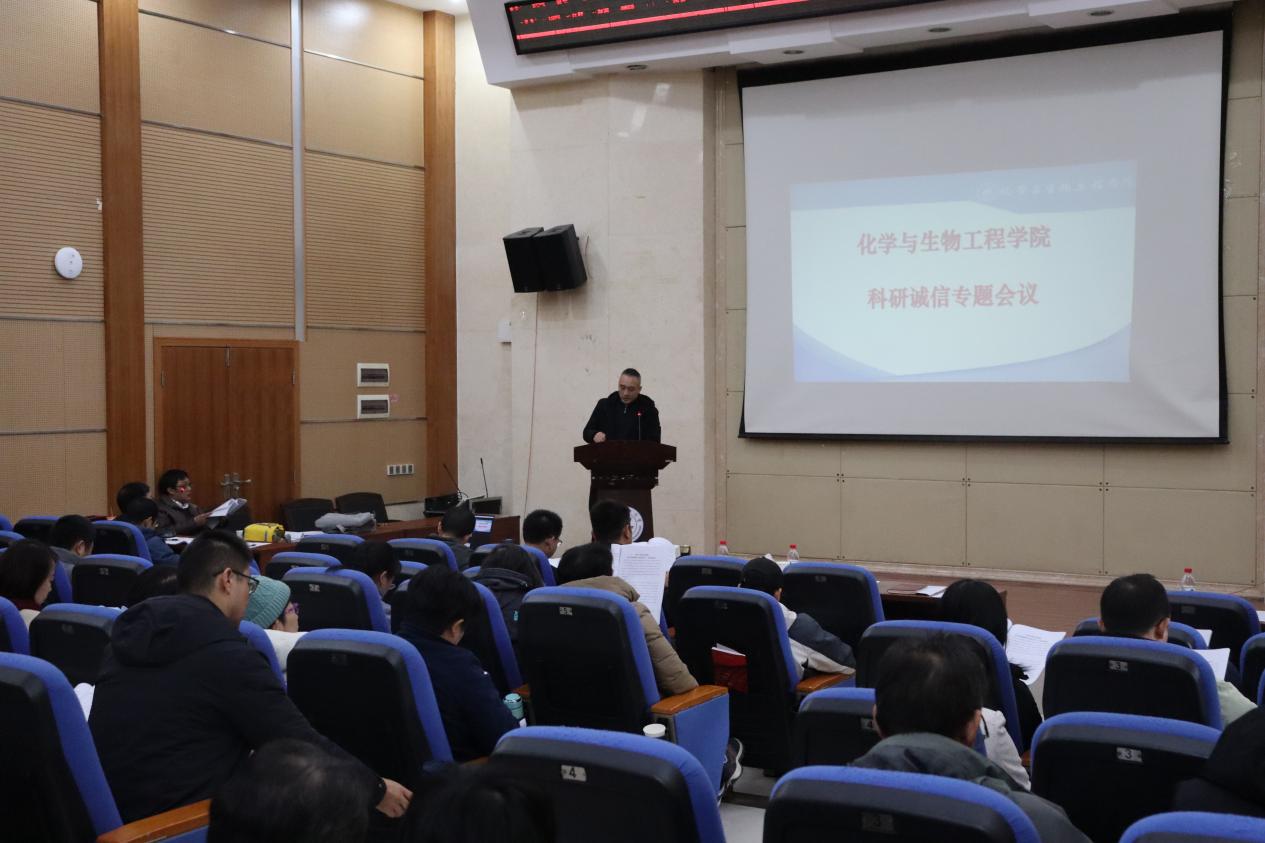 为持续推进科研诚信建设,营造良好学术氛围,12月13日上午,学院在萃华楼报告厅组织全体教师开展科研诚信专题会议,会议由学院副院长何方主持。 何方副院长带领全体教师深入学习了《教育部关于加强高等学校科研诚信建设和学术不端治理的指导意见》和教育部《高等学校学术不端行为调查处理实施细则》。他强调科研诚信是师德师风的重要体现,是学术之根、创新之基。坚守诚信原则,树立诚信品质,恪守科学道德准则,遵守科研活动规范,践行科研诚信要求,秉承求真务实、勇于创新的治学态度和学术精神,成为良好学术风气的维护者、严谨治学的力行者、优良学术道德的传承者,坚决杜绝违背科研诚信和学术不端行为。 会议通报了近年来科研领域发生的学术不端案例,要求全体老师深刻汲取教训、深入警醒反思,对标对表查找自身存在的差距,坚决抵制各种学术不端行为,营造诚实守信、风清气正的学术氛围。 何方副院长讲话 会议现场 (一审:马文硕 二审:李少华 三审:何方)
