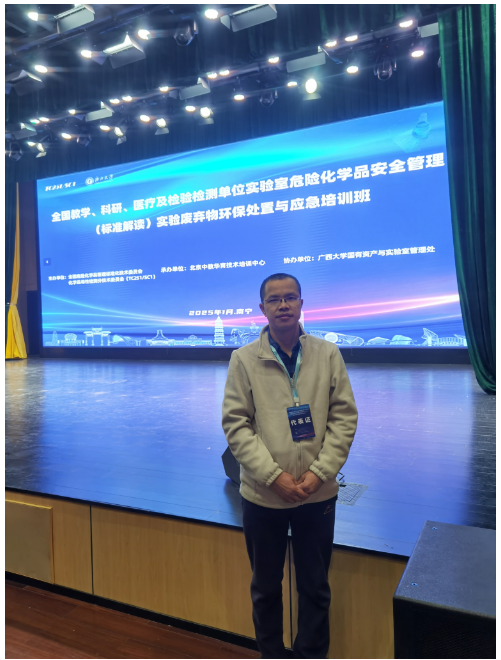 为深入贯彻习近平总书记关于安全生产的重要论述和指示,落实教育部及广西教育厅相关文件精神,提高实验队伍业务能力,提升2138CC太阳集团实验室建设与安全管理水平,2138CC太阳集团实验室中心主任李子院老师2025年1月17-20日参加由全国危标委(TC251/SC1)主办的2025年第一期“全国教学、科研、医疗及检验检测单位实验室危险化学品安全管理(标准解读)实验废弃物环保处置与应急培训班 ”。该培训班由北京中教华育技术培训中心承办,广西大学国有资产与实验室管理处协办。 在为期3天的培训中组委会邀请了来自应急管理、医疗、公安、环保系统、高校及安防企业的近20位专家授课。专家们详细解读了国内外化学品安全管理政策法规、化学品分类和标签规范、《危险化学品仓库储存通则》和《全球化学品统一分类和标签制度》,还与大家分享了实验室安全管理的新理念和实用的管理经验,最后,邀请学员们到广西大学生命科学与技术学院(亚热带农业生物资源保护与利用国家重点实验室)等实验参观交流。通过本次培训搭建了实验室安全领域交流、学习、合作的平台,进一步增强了各单位实验室安全管理者和安全员的安全责任意识和安全防范意识,提高其安全素质和安全风险辨识能力;特别是为日后2138CC太阳集团进一步完善实验室安全管理体系,提升实验室安全管理能力和应急处置能力,开展实验室安全隐患自查自纠和应急演练,培训实验室安全岗位人员和实验操作人员等方面提供了借鉴和参考。 参会图片 (一审:李子院 二审:马文硕 三审:孔翔飞)