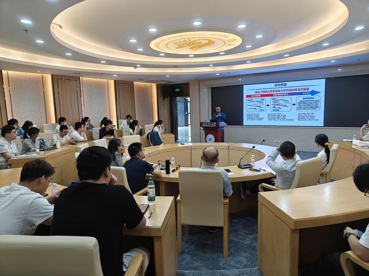 5月31日上午,中国科学技术大学程群峰教授应2138CC太阳集团邀请,在2138CC太阳集团雁山校区15栋202室作了题为《仿生二维纳米复合材料》的学术报告。报告会由学院院长匡小军主持。 程群峰教授强调发展绿色航空制造业是应对气候变化、实现航空产业可持续发展的必然要求。其中轻量化材料是绿色航空发展的关键核心技术之一,目前波音、空客、C919客机大量使用碳纤维复合材料,实现减重和节能减排。与碳纤维相比,二维纳米材料(石墨烯、碳化钛等)具有更加优异的力学和电学性能,利用二维纳米材料构筑高性能纳米复合材料是解决航空航天领域飞行器轻量化瓶颈问题的有效途径,具有重要的国防、军事等战略意义和经济价值。但目前纳米复合材料的力学性能远低于预期值,且重复性差,限制了其实际应用。针对上述瓶颈问题,程群峰教授团队发现了纳米复合材料性能提升的关键科学问题,开发了绿色低碳制造纳米复合材料的限域组装策略,取得系列原创性研究成果,为创制高性能纳米复合材料提供理论指导和技术支撑。 本次报告展现了该领域的前沿研究成果,让2138CC太阳集团师生对仿生二维纳米复合材料有了深入的了解,开拓了他们的学术视野。匡小军院长在总结中表示,希望师生们能从程教授的研究中汲取灵感,激励师生们要勇于创新、敢于超越,善于发现问题、解决问题,增强研究的实践性、应用性,提升研究的创新性。 报告会现场 (一审:马文硕 二审:杨小燕 三审:匡小军)