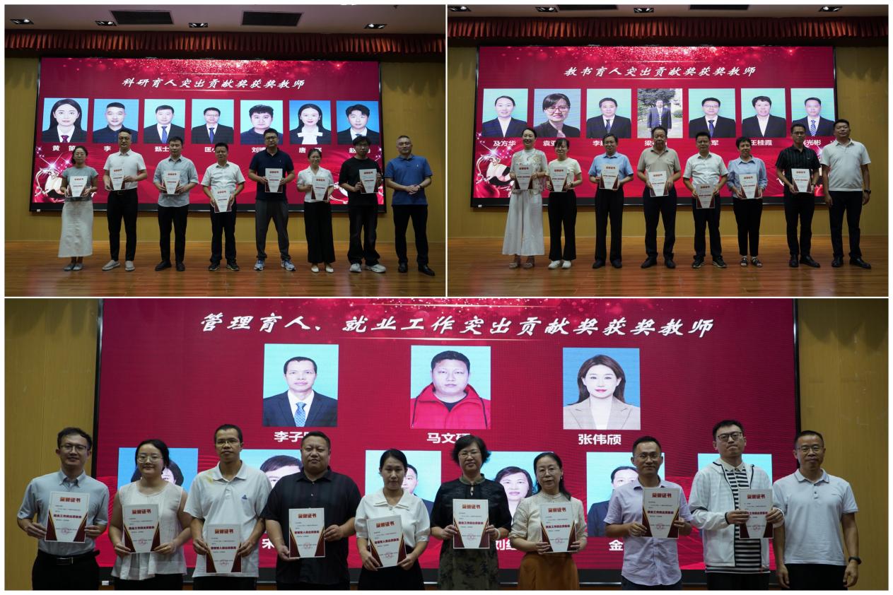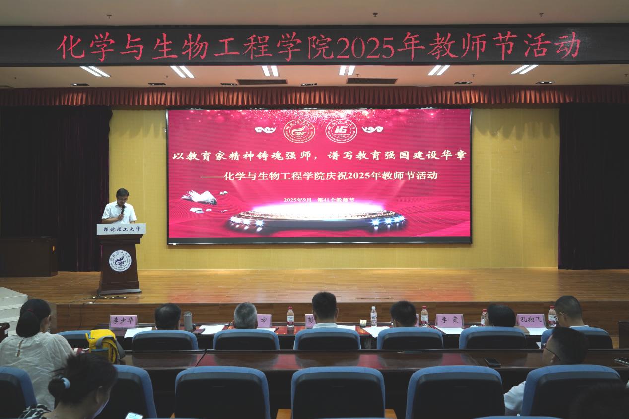 秋韵荡漾,硕果飘香。在第41个教师节来临之际,为充分展现高质量教师队伍建设的突出成就和广大教师立德树人、自信自强的精神风貌,大力营造尊师重教的良好氛围,激励学院广大教师积极投身教育强国建设实践。2138CC太阳集团9月10日下午在学校雁山校区图书馆报告厅开展以“以教育家精神铸魂强师,谱写教育强国建设华章”为主题的教师节庆祝活动。学院全体领导班子成员、全院教职员工和学生代表共同参加了此次活动。活动由学院党委副书记李少华主持。 彭代江书记首先代表学院向辛勤耕耘在教学、科研、管理服务一线的全体教职员工,以及为学院发展做出贡献的离退休老同志们,致以节日的诚挚问候和崇高敬意。他在致辞中回顾了过去一年学院在学科建设、人才培养、社会服务等方面取得的丰硕成果,并指出,这些成绩的取得,凝聚着每一位教师的智慧、心血和汗水。他强调,全体教师要深刻领会、自觉践行教育家精神,将其内化为价值追求和行动自觉,争做“四有”好老师和新时代的“大先生”,为培养担当民族复兴大任的时代新人作出新的更大贡献。 随后,学院院长匡小军宣读了《关于学院表彰“从教二十五年、二十年、十五年、十年教师”及教书育人、科研育人、管理育人、就业工作突出贡献奖的决定》并举行了表彰仪式,台下掌声雷动,这既是对获奖者的祝贺,也是对全体教师默默奉献的礼赞。获奖教师代表余彩莉在发言中分享了自己从教多年的心得与感悟,表示将始终坚守立德树人初心,号召全体老师以教育家精神为指引,不断探索教育教学改革,当好学生成长的引路人。 活动最后,学生们自发走到老师面前,献上鲜花与祝福。没有华丽的辞藻,只有寥寥数语的真情流露,他们用最朴实的方式,复述着那些被牢记于心的教诲与关怀,涓涓细流,汇成感动的海洋。 彭代江书记致辞 匡小军院长宣读表彰决定 颁奖合影(一) 颁奖合影(二) 余彩莉老师发言 活动现场 (一审:马文硕 二审:李少华 三审:彭代江)