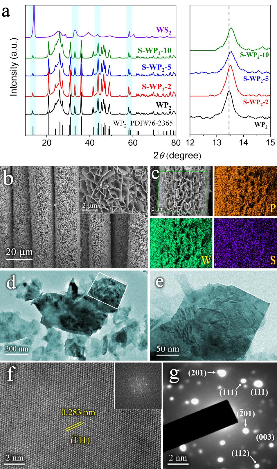 图2. S-WP2材料的形貌和结构表征。