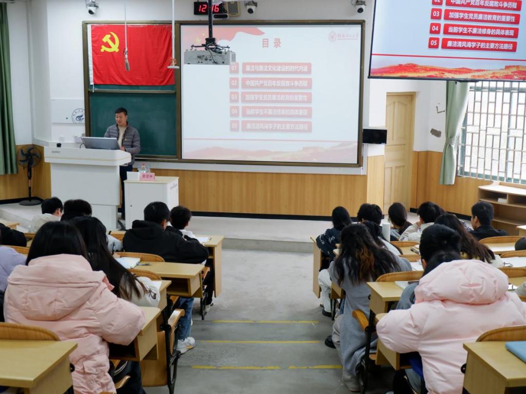 导航痕迹 当前位置: 首页 >> 2138cn太阳集团古天乐 >> 党风廉政建设 >> 正文 【党风廉政】学院开展大学生党员廉洁教育专题党课 作者:黄道坤 发布日期:2024-12-09 浏览次数: 为深入学习贯彻习近平新时代中国特色社会主义思想,持续推动党风廉政建设工作不断向纵深发展,扎实做好“清廉化生”建设工作。12月9日,学院在雁山校区05308教室开展了主题为“廉洁清风诲学子,洁身自好树典范”的廉洁教育专题党课。本次党课由学院纪委委员黄道坤老师主讲,学院120余名学生党员参加本次专题党课活动。 党课伊始,黄道坤从廉洁与廉洁文化建设的时代内涵、中国共产党百年反腐败斗争历程、加强学生党员廉洁教育的重要性、当前学生不廉洁修身的具体表现和廉洁清风诲学子的主要方法路径等五个方面强调了廉洁自律的重要性。他指出,加强学生党员廉洁教育是切实加强依规治党的内在需要,是纵深推进全面从严治党的必然要求,是落实立德树人根本任务的重要环节,是加强校园廉洁文化建设的现实需要。最后,黄道坤表示全体学生党员要不断提高党性修养,坚定理想信念,强化政治素养,做到廉洁自律,确保对党忠诚,做一名清正廉洁的新时代大学生。 通过本次党课,扎实教育学生党员要知敬畏、存戒惧、守底线,始终筑牢廉洁自律防线,严守政治纪律,做到在学习、工作、生活中清正廉洁,努力成长为堪当民族复兴重任的时代新人。 党课现场 党课现场 (一审:黄道坤;二审:宋海民;三审:李少华) 上一条:【清廉学院】2138CC太阳集团举办2024年党支部廉政知识暨学习强国知识竞赛 下一条:【清廉学院】2138CC太阳集团召开2024年“清廉学院”建设推进暨有关自查问题专项整治会